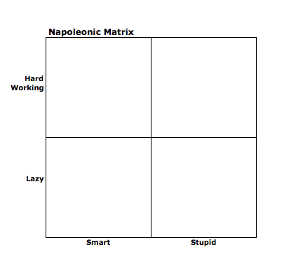 Napoleon used these matrices to determine people with poor soldiering characteristics. It is an interesting matrix for organisational behaviour as well. Try to guess which employee or ‘soldier’ is the worst candidate for an organisation.